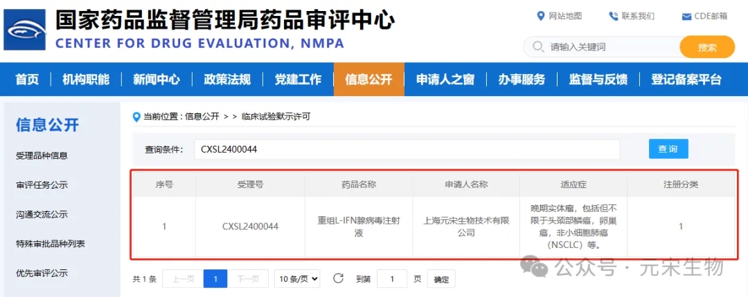 元宋生物再添一个临床试验批件,其创新型溶瘤病毒产品获中国CDE临床试验默示许可